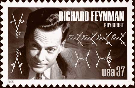 The iconic 20th century physicist Richard Feynman invented a method for calculating probabilities of particle interactions using depictions of all the different ways an interaction could occur. Examples of “Feynman diagrams” were included on a 2005 postage stamp honoring Feynman.